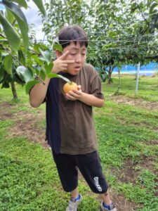 皆さん上手に梨を取る事が出来ました。欲張って何個も