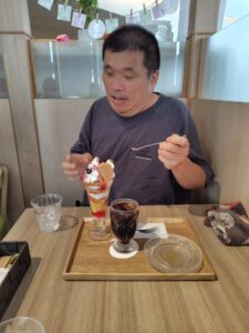 カフェでは、ケーキやパフェなどそれぞれ思い思いの物を注文され、
