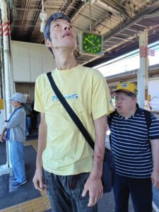 声を掛けると、今からの旅行のはじまりに皆さんワクワク♪電車に揺られながら無事、大阪へ到着!