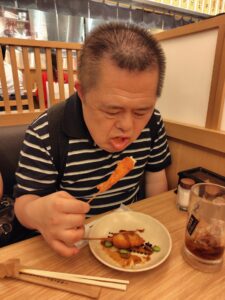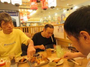 夕食は、串カツだるまに行きました。ハムカツ、ジャガイモ、ウィンナー、