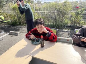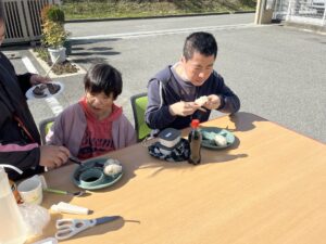 なごみの里の中庭で机を広げてグループごとに頂きました♪