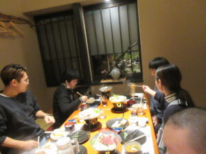 自身でお肉を小鍋に入れ、待ちきれない利用者さんも😆